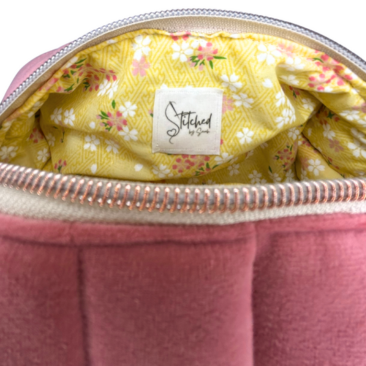 Cherry Blossom Quilted Velvet Makeup Bag - Medium
